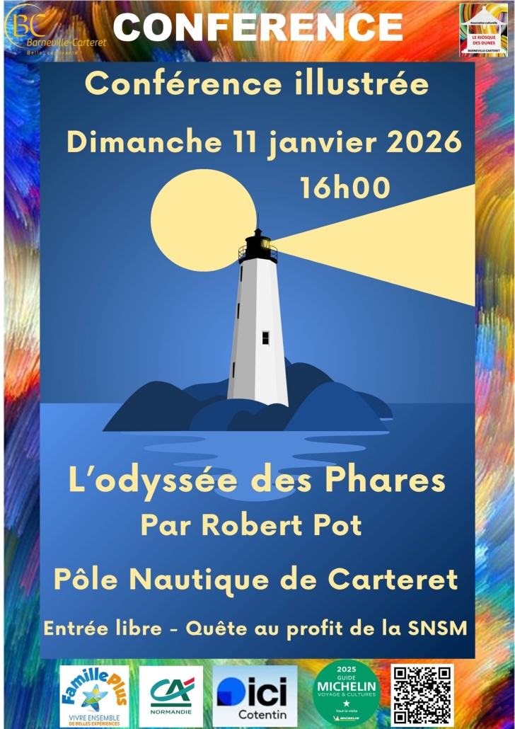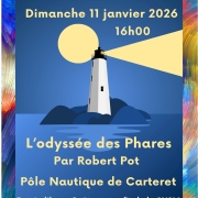 Conférence11 janvier 2026 dimanche 11 janvier 16:00 - 17:30 N𝐨u𝐯e𝐥l𝐞 𝐚n𝐧é𝐞, 𝑛𝐨𝑢𝐯𝑒a𝑢 𝑝r𝑜g𝑟a𝑚m𝑒 ! 𝘓𝘦 𝘒𝘪𝘰𝘴𝘲𝘶𝘦 𝘥𝘦𝘴 𝘋𝘶𝘯𝘦𝘴 vous propose d’ouvrir la programmation avec une 𝐜𝐨𝐧𝐟𝐞́𝐫𝐞𝐧𝐜𝐞 sur l’Odyssée des Phares Dimanche 11 janvier 2026 16h00 au Pôle Nautique Carte non disponible https://station.barneville-carteret.fr/wp-content/uploads/sites/3/2026/01/Lodyssee-des-Phares_11-01-2026.jpg 1754 1240 Barneville-Carteret https://station.barneville-carteret.fr/wp-content/uploads/sites/3/2017/04/logo_normal.jpg Barneville-Carteret2026-01-06 10:24:382026-01-06 10:24:38Conférence