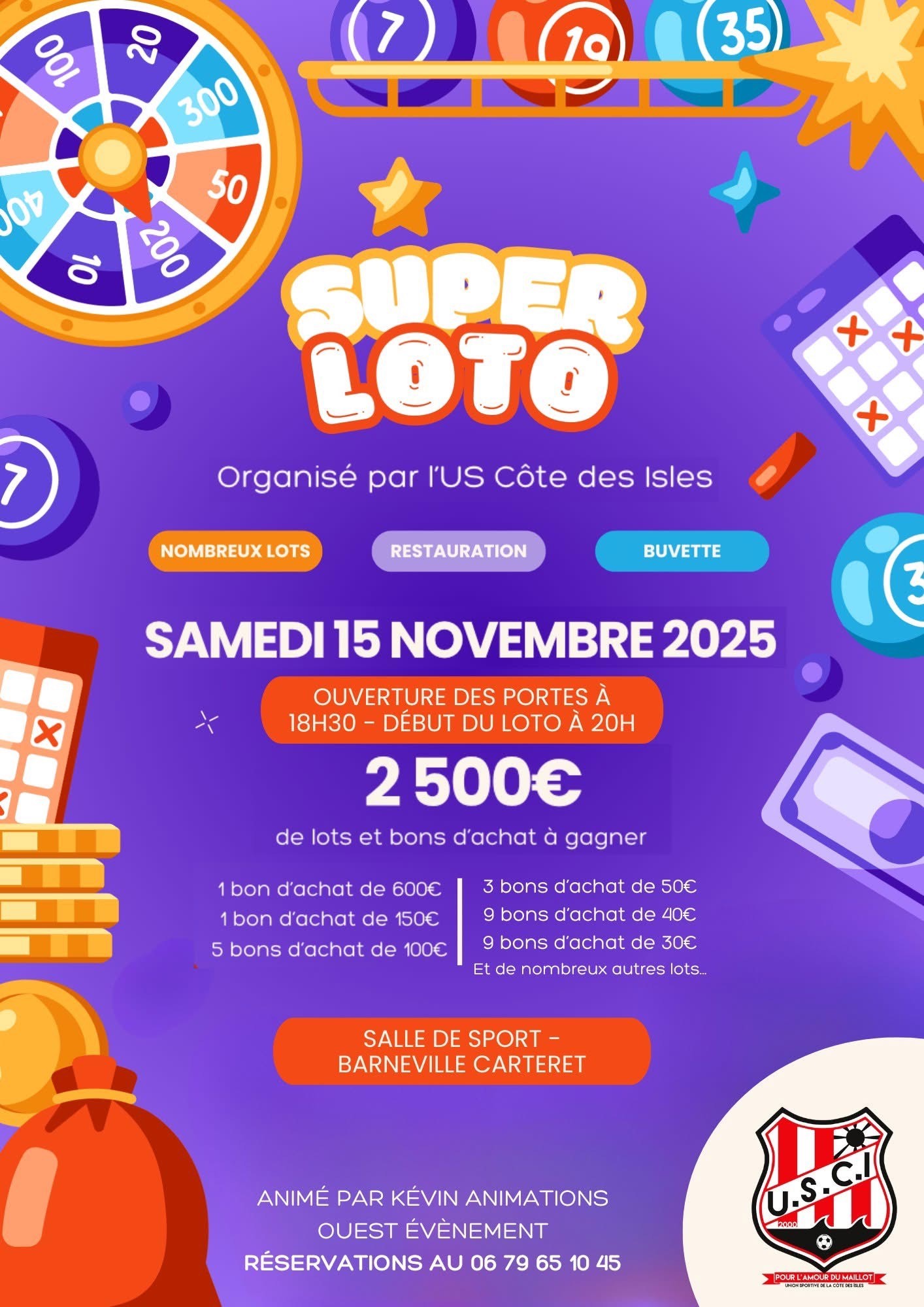 LOTO USCI15 novembre 2025 samedi 15 novembre 19:00 - 23:30 Le 𝗟𝗢𝗧𝗢 revient le samedi 15 novembre 2025 au gymnase de Barneville-Carteret Ouverture des portes à 18h30 / début du loto à 20h00 Restauration et buvette sur place 𝟮𝟱𝟬𝟬€ de lots et bons d’achat à gagner 𝐑é𝐬e𝐫v𝐚t𝐢o𝐧 𝐚u : 0𝟔 𝟕9 6𝟓 𝟏0 4𝟓 Carte non disponible https://station.barneville-carteret.fr/wp-content/uploads/sites/3/2025/11/Loto-du-foot.jpg 2000 1414 Barneville-Carteret https://station.barneville-carteret.fr/wp-content/uploads/sites/3/2017/04/logo_normal.jpg Barneville-Carteret2025-11-04 09:45:372025-11-04 09:45:37LOTO USCI